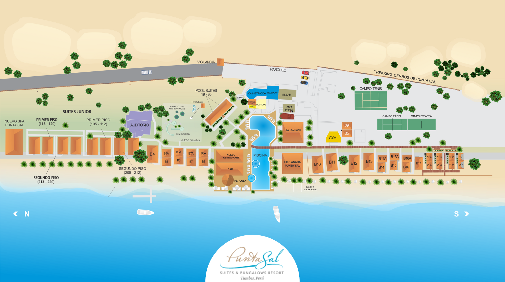 Punta Sal Suites & Bungalows Resort tiene una ubicación estratégica, con más de 1,300 metros lineales de playa protegida del viento y sol todo el año.