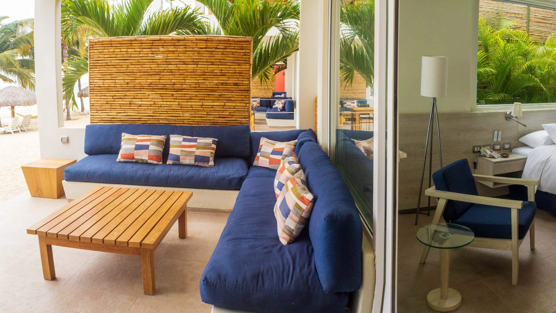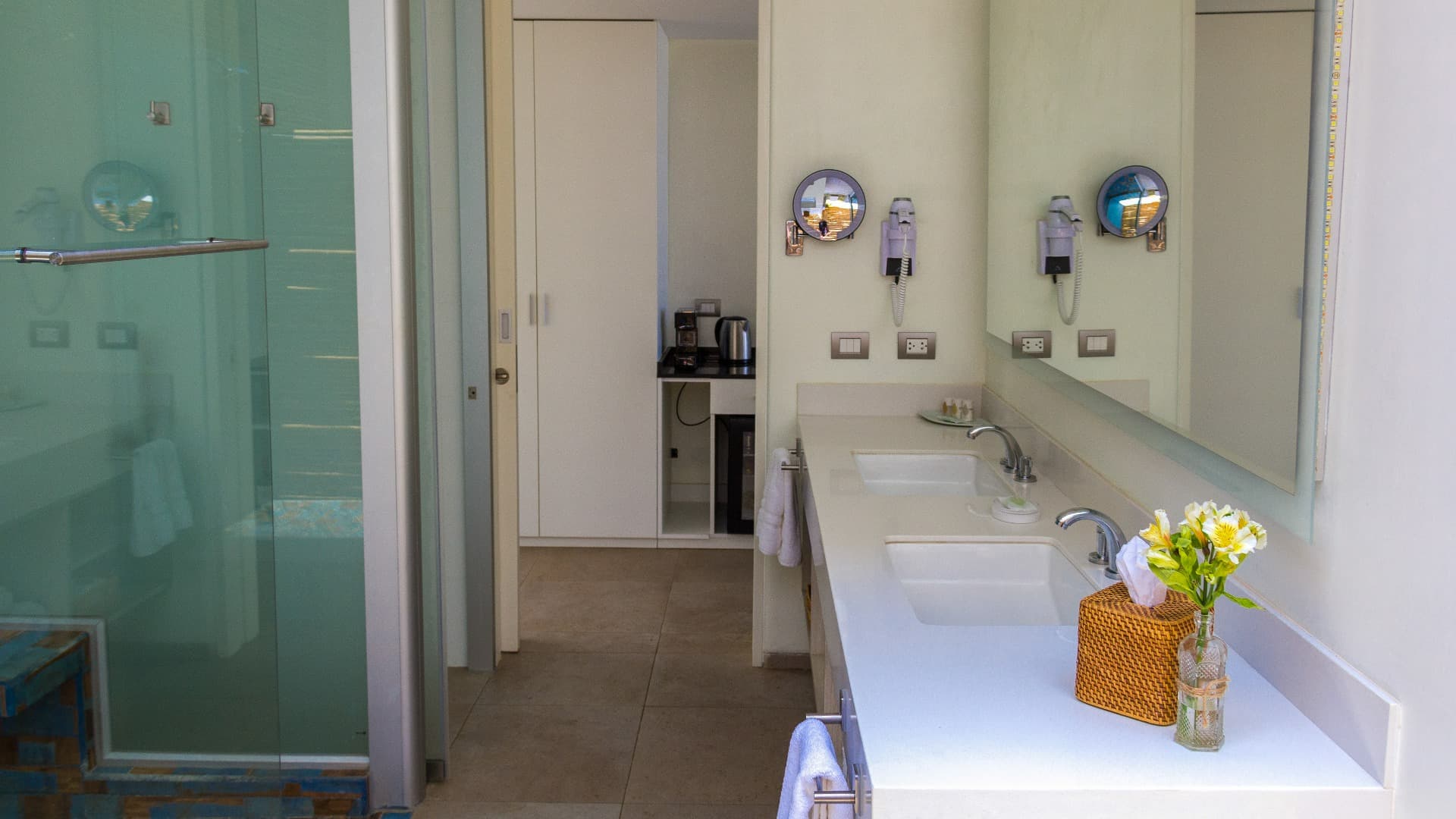 Disfruta de un exclusiva suite de 75m² con acabados de lujo, frente al mar y con salida directa a la playa. Basta con dar unos cuantos pasos para ya estar en la playa y en el mar. Goza de una ducha al aire libre con vista al mar.